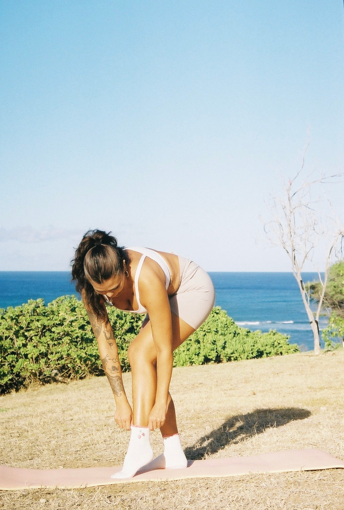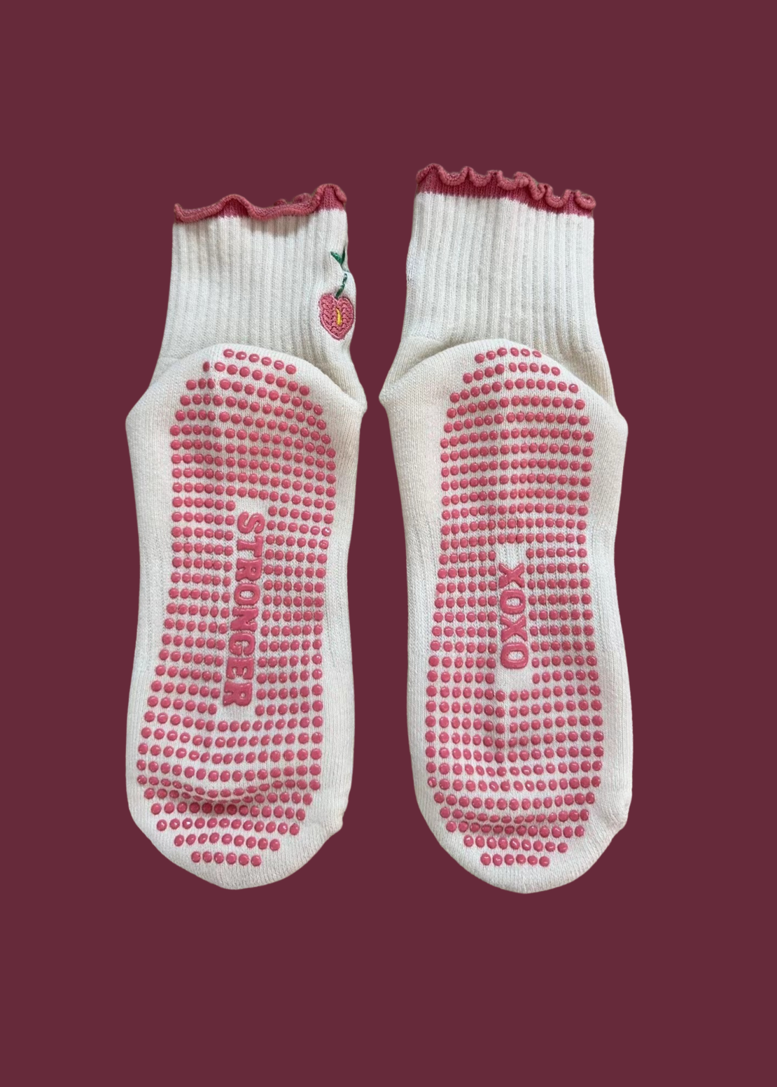 Introducing our Cherry Day cotton blend grip socks – the perfect blend of comfort and cuteness for your workout! These grip socks are designed to bring a touch of tropical islaʻs (Islands) to your Pilates, Lagree, barre or yoga sessions.
